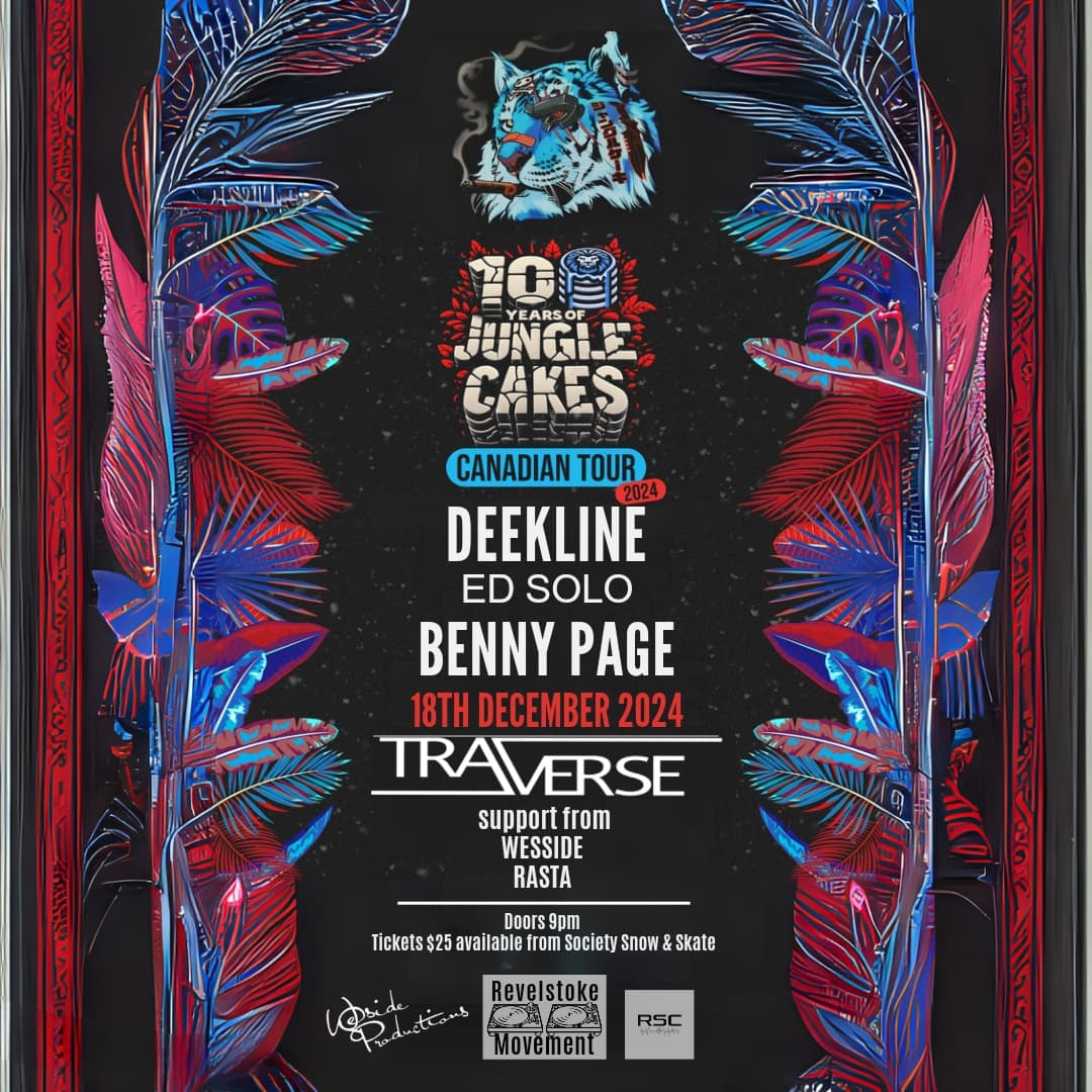 The return of Jungle Cakes titans; Deekline, Ed Solo & Benny Page to Revelstoke. Last year went off, so we are looking forward to bringing another DnB night to a packed crowd at Traverse.