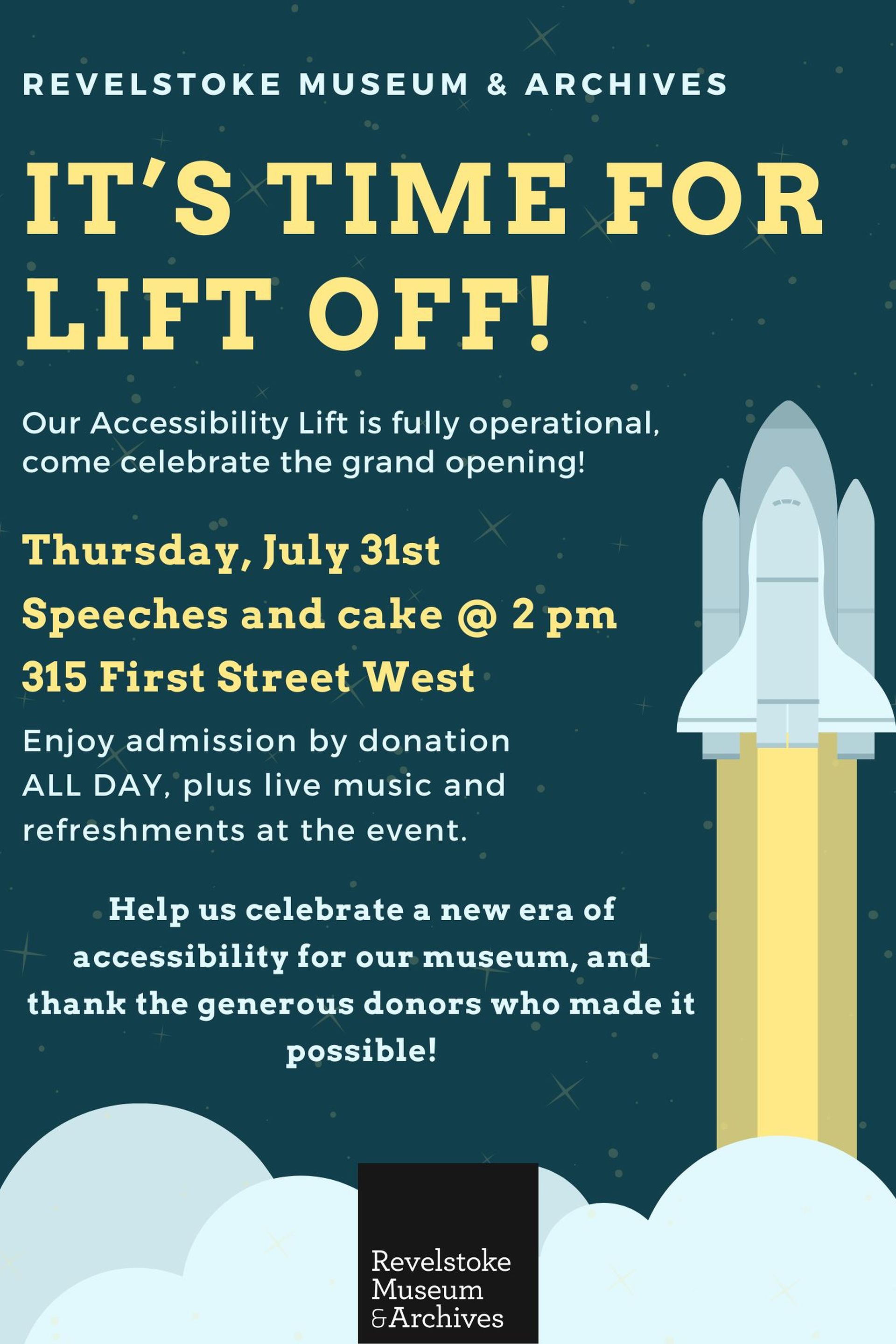 The Revelstoke Museum & Archives new Accessibility Lift is fully operational. Come celebrate the grand opening!